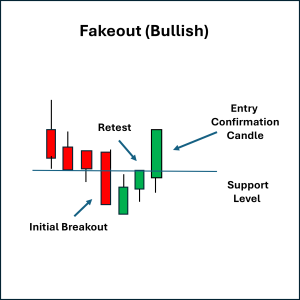 The Fake-out Reversal combines the illusion of a breakout with the confirmation of failure, allowing traders to capture momentum when trapped participants may choose to exit.
